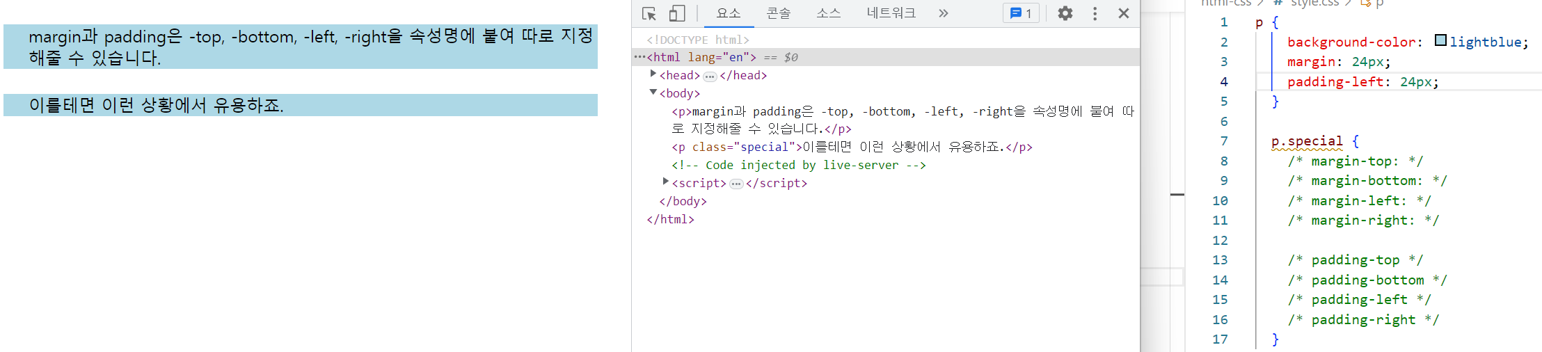 그리고 p태그를 지정해서 margin, 혹은 padding값을 조절하고 싶다면 class를 줘서
